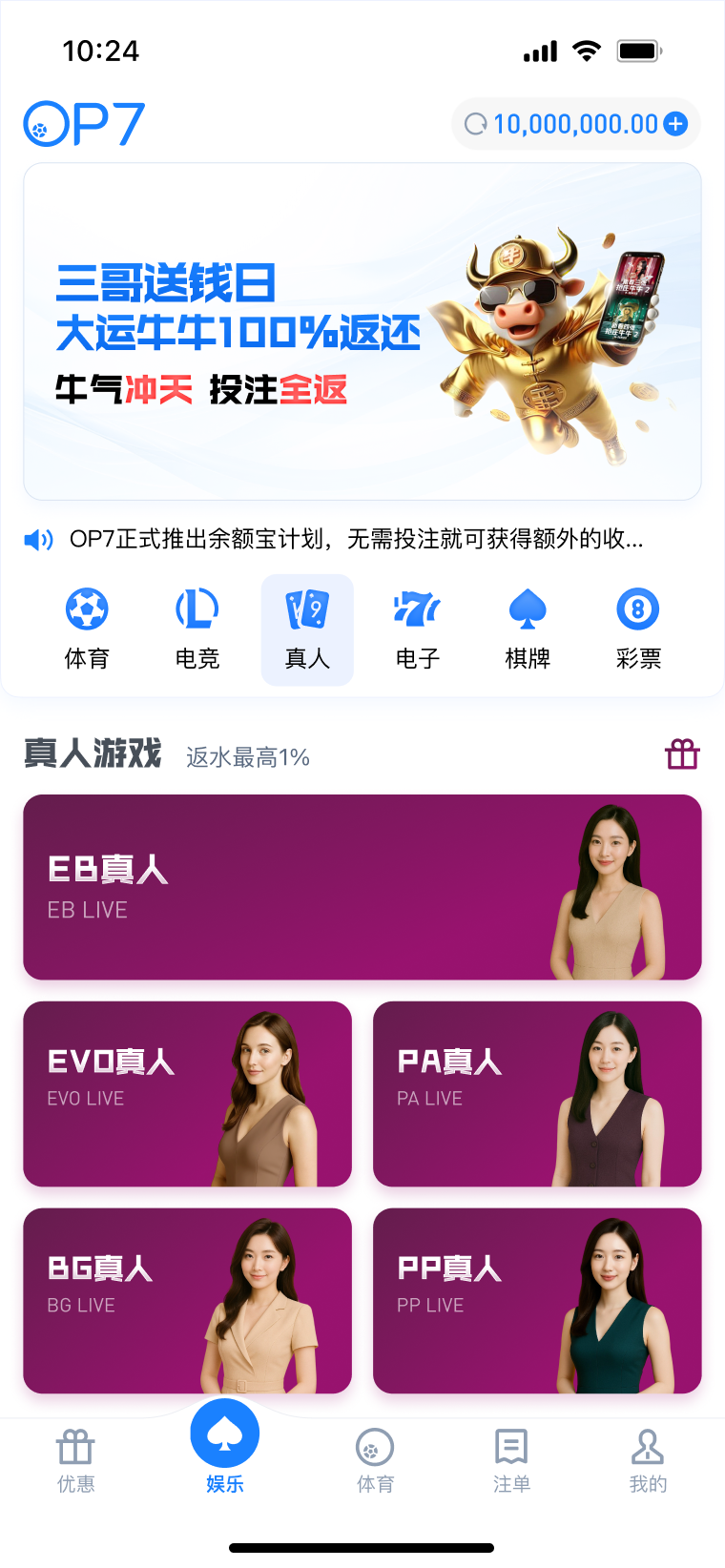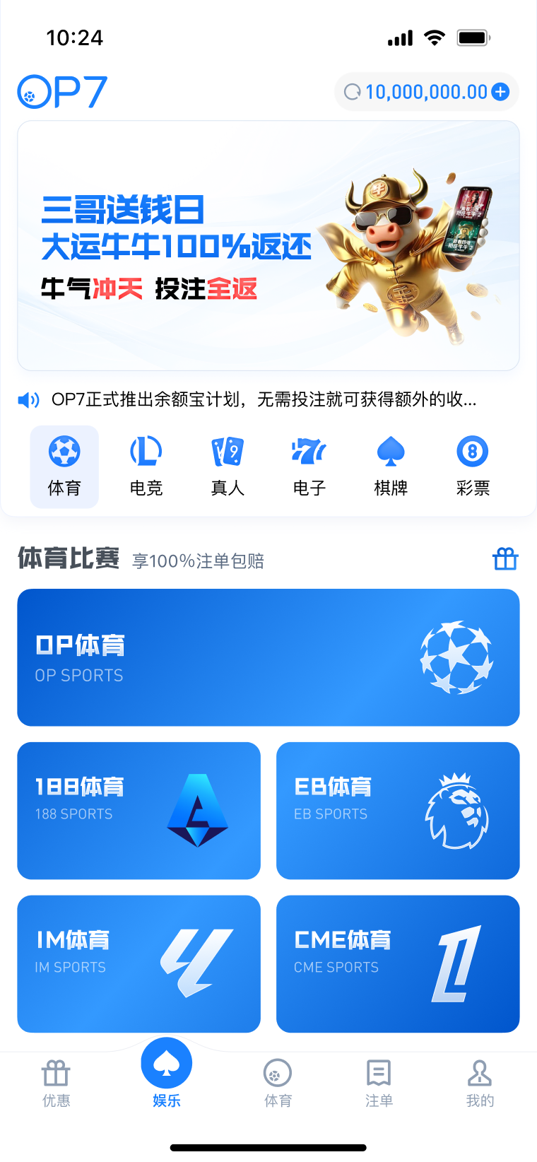 公告: 1、品牌升级公告:为促进平台长期稳定发展规划,「EMC易倍」平台已完成合规和品牌升级,即日起,品牌正式升级为 「OP7」。 2、巅峰预言家:洞见赛果,亮出你的剧本 3月3日 04:15 吉维森特vs本菲卡 3、2026鸿运转盘 免费抽5次 最高888元! 4、2026新春邀约 新年保险卡 最高68%! 5、OP7霸王餐包赔 投注多场指定赛事,享指定场馆总负盈利包赔!